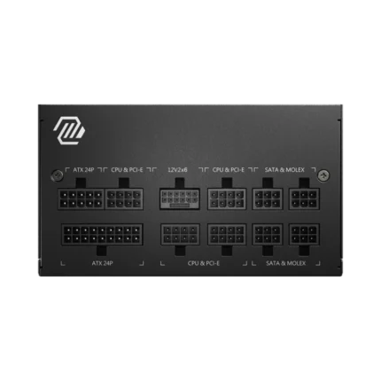 Alimentation MSI MAG A750GL – 750 W – Certification 80 PLUS Gold – Modulaire – Format ATX/EPS – 2 sorties +12V (P8 – 2 x P4) – 8 connecteurs d’alimentation Serial ATA – 1 connecteur ATX 24 broches – 1 connecteur disquette Molex 4 broches femelle – 4 connecteurs Molex (4 broches) femelle – 3 connecteurs PCI Express 6+2 broches – 1 connecteur PCI Express 16 broches (12VHPWR) – Garantie 1 an.