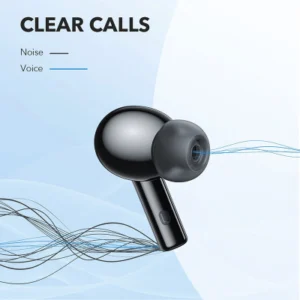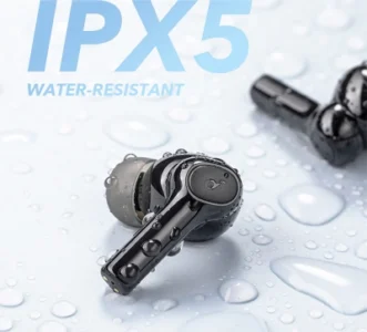 Le design des Anker Soundcore R100 est élégant avec des embouts arrondis et souples, et une finition en polycarbonate noir. Ces écouteurs sont dotés de haut-parleurs dynamiques de 2×10 mm pour des basses profondes et permettent un contrôle facile de la musique et des appels grâce à des commandes tactiles. Certifiés IPX5, ils résistent aux éclaboussures.