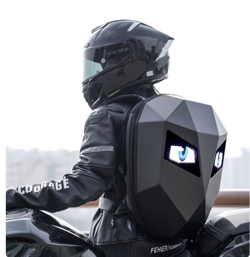 Un sac à dos futuriste, pratique et stylé — parfait pour les motards qui veulent allier sécurité et originalité