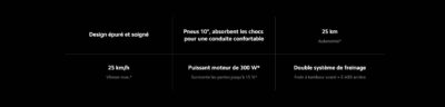 – Vitesse maximale : 25 km/h (Modes : Piéton 6 km/h – D 15 km/h – S 25 km/h) 🚀